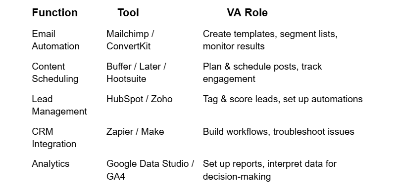- Hire a VA with marketing + tech experience – Not just any admin. Look for digital fluency.